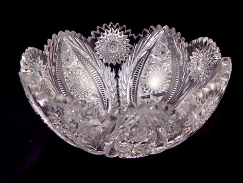 LAZARUS STRAUSS & SONS BRILLIANT PERIOD CUT GLASS BOWL: 9'' dia., signed with star in circle mark.