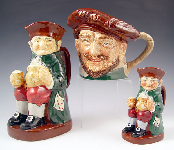 3 ROYAL DOULTON CHARACTER TOBY JUGS: To include 2 different sizes of ''Old Charlie'' 5 1/4'' high and 8 1/2'' and ''Drake'' 5 5/8'' high x 7 1/2''.