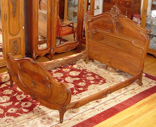 ORNATE CARVED FRENCH BED: Headboard measures 61 1/2'' high x 66 1/2'' wide. Footboard measures 32 1/4'' high. Will accept a 56 3/4'' mattress.