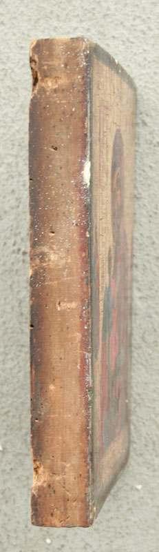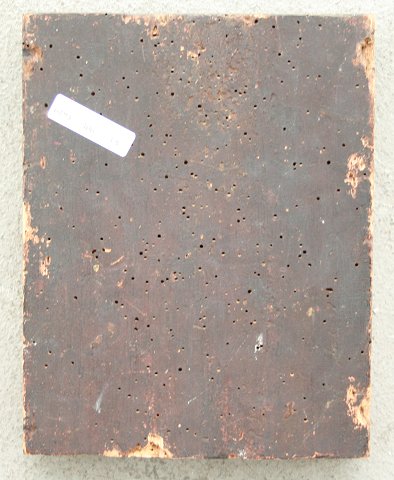 EARLY? ICON ON THICK WOOD BOARD: 9'' x 7'' x 1'' thick. Cracklure throughout, needs cleaning.