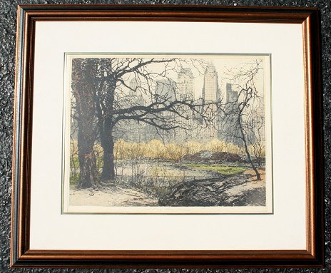 KASIMIR, Luigi, (Austrian, 1881-1962): Central Park, NYC, Color Etching & Aquatint, 13 3/8'' x 17 1/2'' sight size, estate signed, framed, 22'' x 26 1/2''. Est. $800/1200**