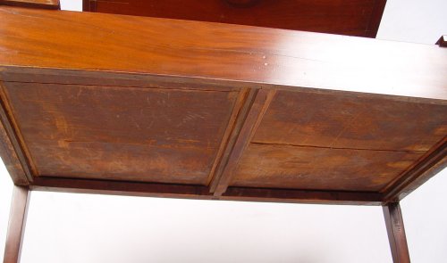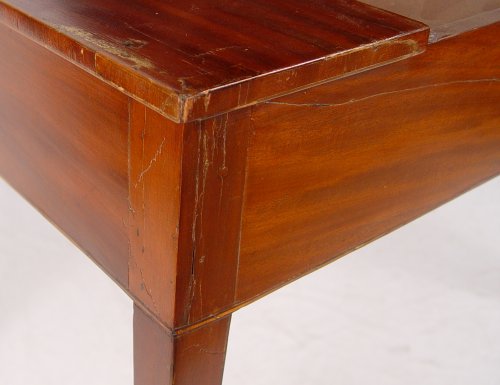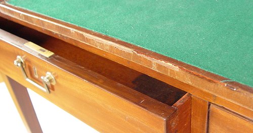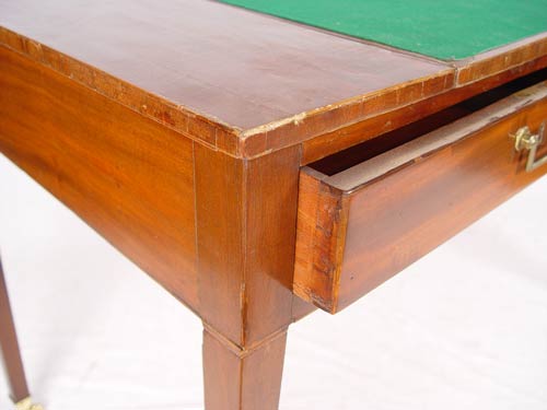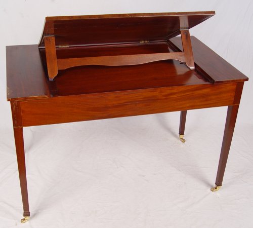 ARCHITECTS TABLE / DESK CA 1830: Adjustable slant top desk, felt top, 2 drawers. Brass tips on tapered legs, casters. 28 3/4'' high x 43 3/4'' wide x 24 3/4'' deep.