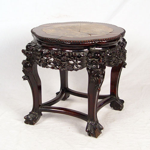 CARVED CHINESE STAND: Marble insert is cracked. 18'' high x 18'' dia.