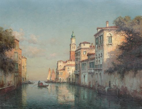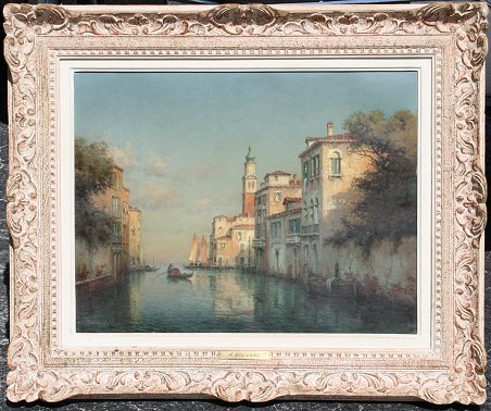 BOUVARD, Antoine, (Italian, 1870-1956): Venetian Canal scene with Gondolier, OIL/C, 19 3/4'' x 25 3/4'', signed, in carved and painted period frame, 29'' x 35'', Sennelier stamp to stretcher verso. Est. $20000/30000**