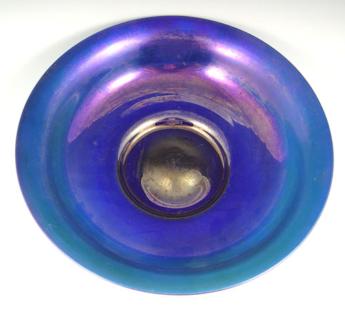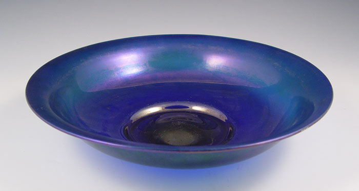 STEUBEN BLUE AURENE ART GLASS BOWL: Etch signed ''Steuben''. 11 3/4'' dia. 2 1/2''h.
