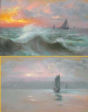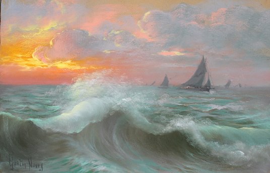 NOURY, Gaston, (French, 1866-?): Two Maritime Scenes, Pastels, 15'' x 20'', both signed, gilded frame 15 1/4'' x 22''. Est. $400/600**
