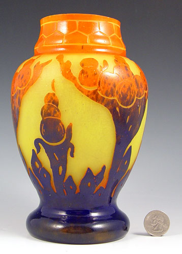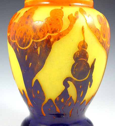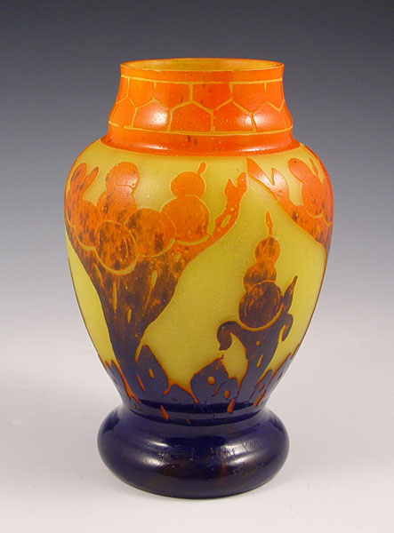 LE VERRE FRANCAIS FRENCH CAMEO GLASS VASE: Engraved on base edge ''Le Verre Francais'' and ''France''. 8''h. Sold by Ovington in New York as inscribed under the base.
