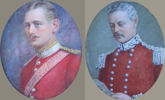 BENNETT, Florence Emily, (English, 1895-1937): 2 Military Portrait Paintings on Ivory, 2 3/4'' x 2 1/8'', both signed, encased in ebonized matching frames, 6 1/4'' x 5 1/2''. From the Estate of G. Elisabeth King, granddaughter of Count Valerio Magawly-Cerati-de-Calry and daughter of Christopher James Patrick Bannon of Castle County Offally Kilcormac, Ireland. Est. $400/800**