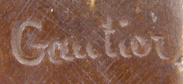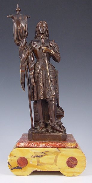 FIGURAL BRONZE SIGNED GAUTIER OF A CRUSADER: 9 3/4''h., affixed to a polished bi-colored marble plinth, 5 1/4'' x 4 5/8'', 12''h. overall.