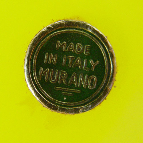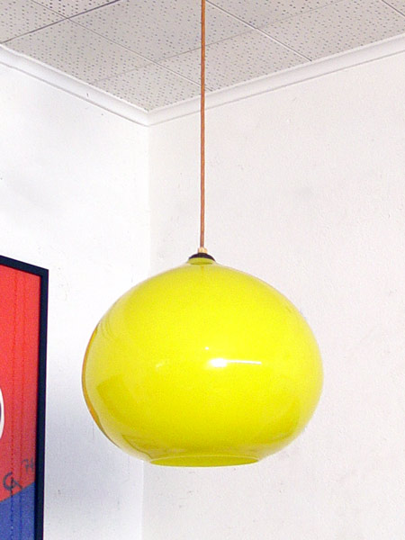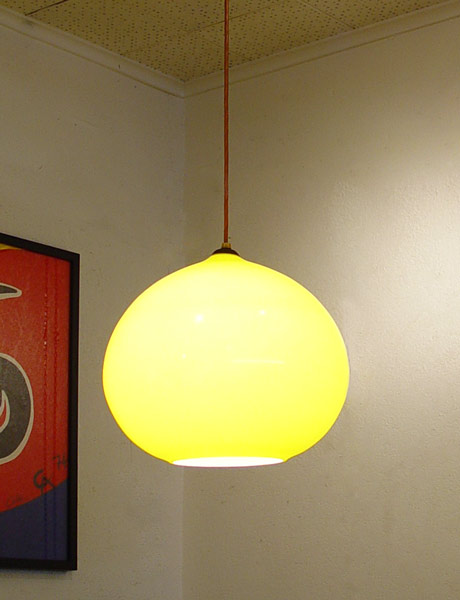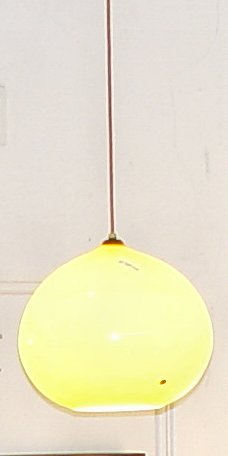 YELLOW MURANO GLASS CEILING LAMP: Spherical shape with Murano foil label. Measures 11 1/2'' high x 12'' dia..