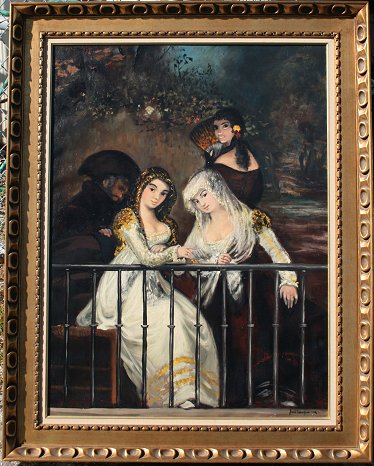 CAMPAS, Jose, (Spanish, 1888-1971): Spanish Ladies, OIL/C, 40'' x 30'', signed, carved and gilded frame with minor wear, 49'' x 38 1/2''.