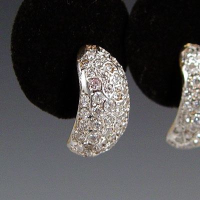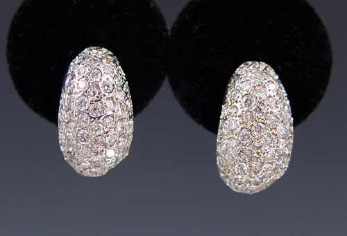 14K GOLD AND 2.50 CTW PAVE' DIAMOND EARRINGS: 14K yellow gold earrings contain 126 round full cut diamonds, approx. 2.50 Ctw. The diamonds average VS in clarity and H-I in color. The diamonds are pave' set. Post and nut closures. .75'' long. Weight: 8.0 grams. Est. $750/1000**