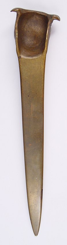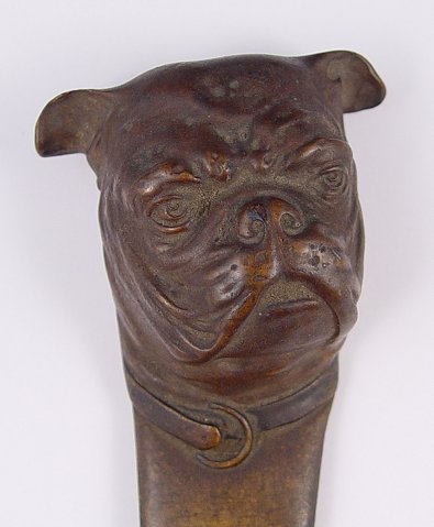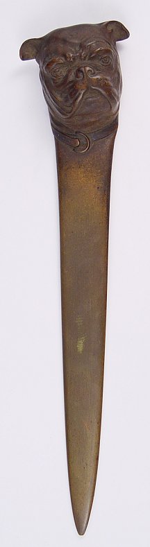 BRONZE FIGURAL BULLDOG LETTER OPENER: All bronze with bulldog head top. Measures 9 1/2'' long.