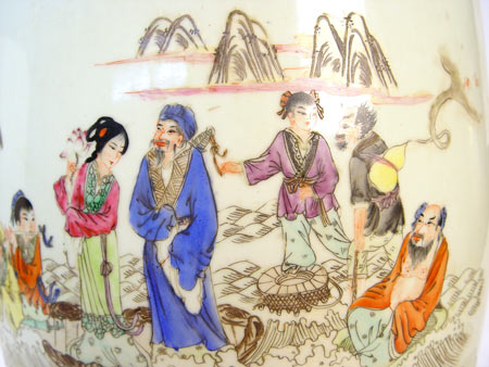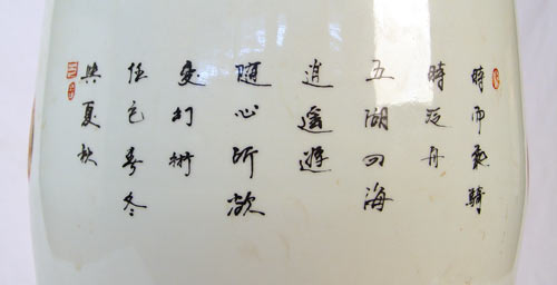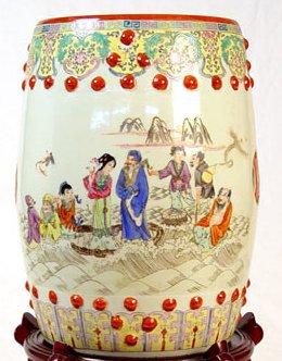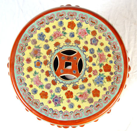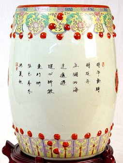 POLYCHROME CHINESE CERAMIC GARDEN SEAT: Measures 18 1/2'' high x 12'' wide
