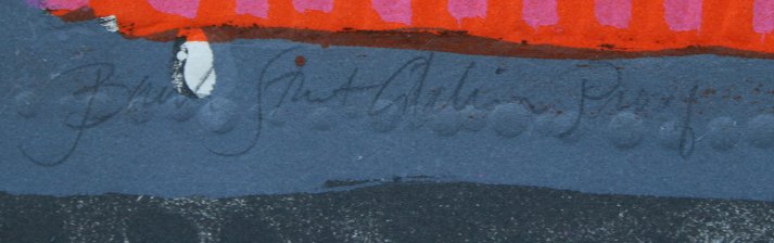 ORTEGA, Jose, (Spanish, 1921-1991): ''Bow Art''?, Artist Proof, Mixed Media Print with embossing, pencil signed, float mounted, 22'' x 24 1/2'', frame 30'' x 32''. Condition - Faint crease in upper left quadrant.