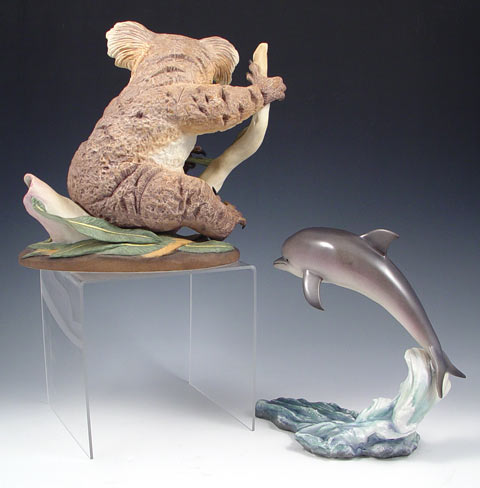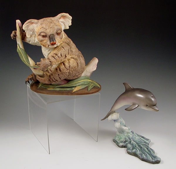2 BOEHM PORCELAIN FIGURES KOALA BEAR AND DOLPHIN: 1) Baby Koala, 9''h. x 10'', U.S.A. 2) Dolphin, 20143, 7 1/2''h. x 8''. Made in England.