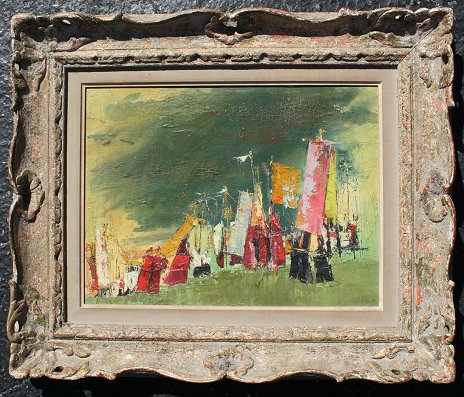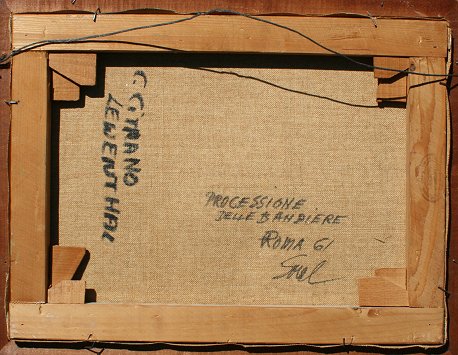 'PROCESSIONE DELLE BANDIERE'', OIL/CANVAS SIGNED SOREL: 12'' x 16'', signed lower right, signed and titled verso, dated '61, from the Lewenthal Collection, carved and painted gesso frame with minor wear, 19'' x 22 1/2''. Est. $300/500**
