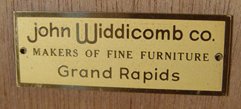 JOHN WIDDICOMB GILT WOOD FRAMED MIRROR: Frame measures 45 1/4'' high x 31 1/4''. ''John Widdicomb, Grand Rapids, Makers of Fine Furniture''.
