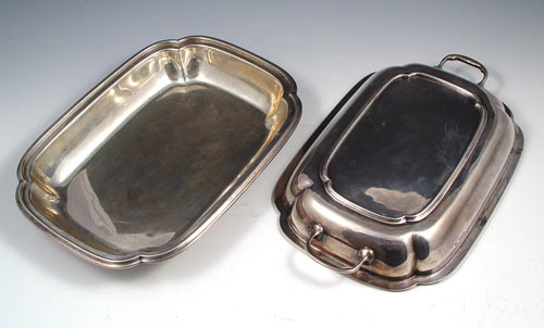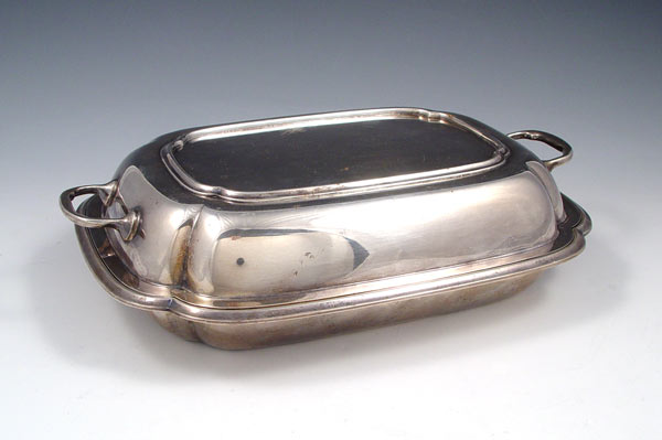 VINERS LTD. STERLING ENGLISH COVERED VEGETABLE: Hallmarked 1937 Sheffield, made by Edward Viner. Measures 3'' high x 12'' x 8 1/8''. Approx. 42 troy oz.