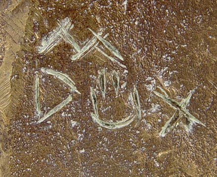 FORLORN MAIDEN BRONZE SCULPTURE: Signed M Dux, 11 1/2'', affixed to polished pink marble 5 7/8''dia. plinth, overall 12 3/4''.
