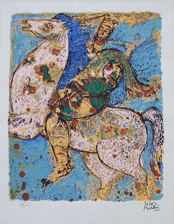 RUBIN, Reuvin, (Romanian, 1893-1974): King on a Horse, Silkscreen, 21'' x 18'' with margins, signed in the plate, # 57/210, unframed. Condition - Light struck with faint stain, crease in left margin and faint creases in lower margin. Sold as is.