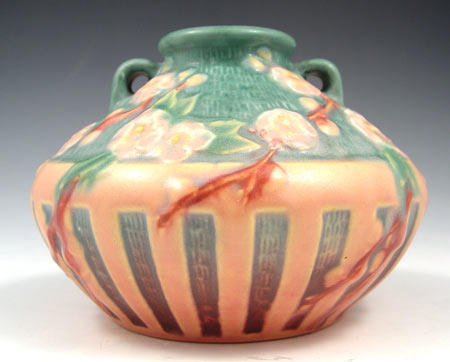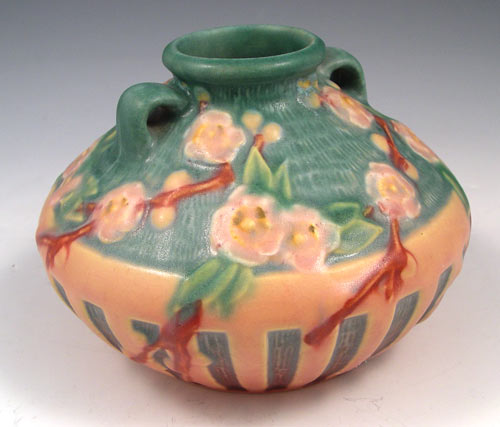 ROSEVILLE POTTERY ''CHERRY BLOSSOM'' VASE: Double handled vase, approx. 4'' tall.
