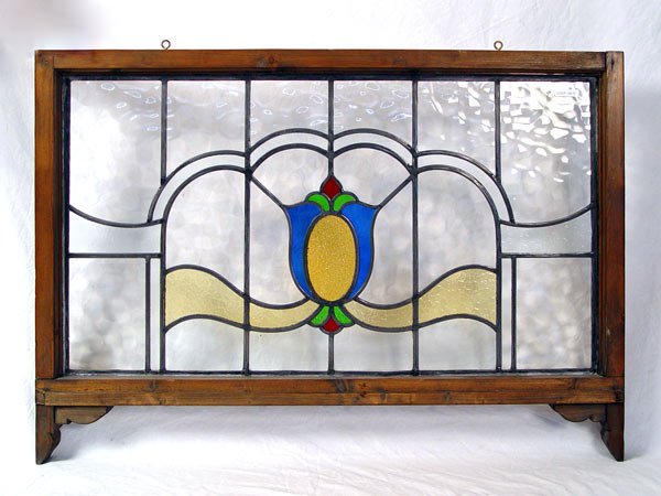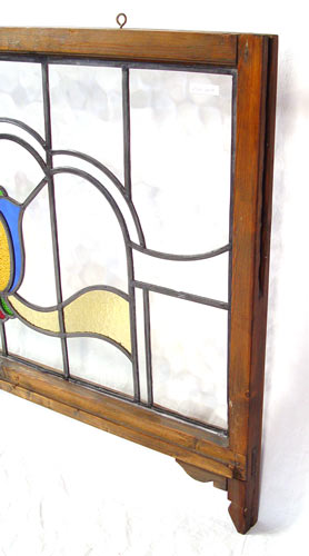 STAINED GLASS WINDOW: Color and clear frosted glass, 41'' x 29 1/2'' x 2'' overall. The glass alone is 36 3/4'' x 21 1/2''. Match to the next window at lot 1360.