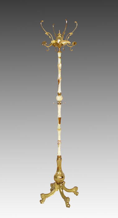 ORNATE AGATE STONE & METAL COAT RACK: Measures 65'' high x 16 1/2'' base dia.