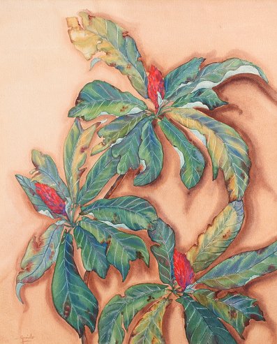SUPERIOR W/C STILL OF AN AFRICAN MAGNOLIA SIGNED GUIDO: Sight size 23 1/2'' x 19 1/2'', custom frame with minor wear, 33 1/2'' x 28''.