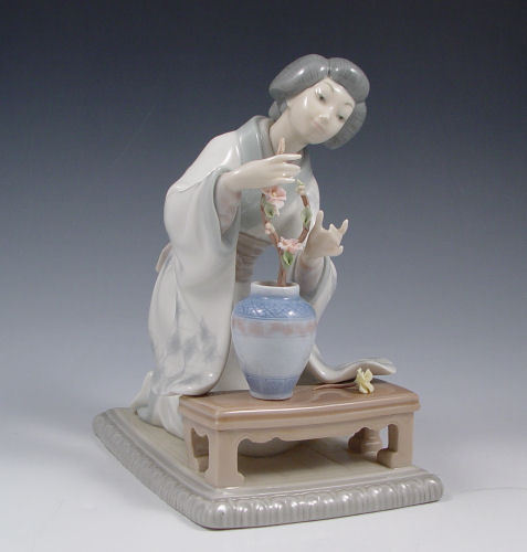 LLADRO ORIENTAL GIRL 4840: Japonesa Decorando, 7.75'' tall, designed by Vincente Martinez.