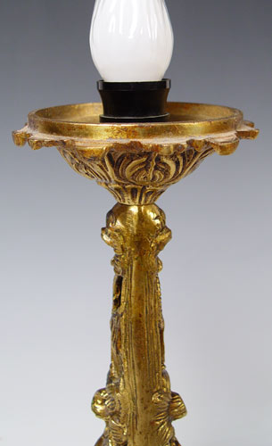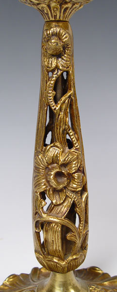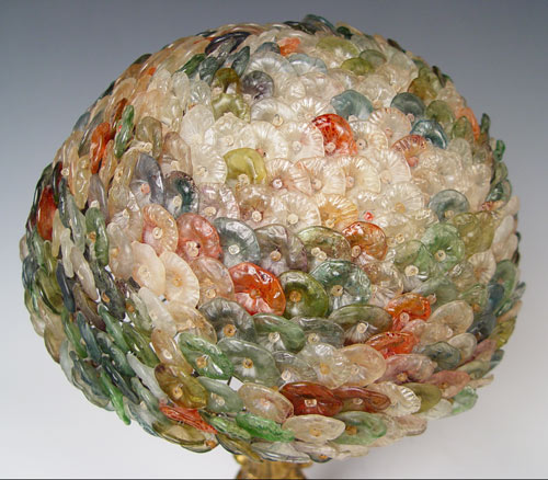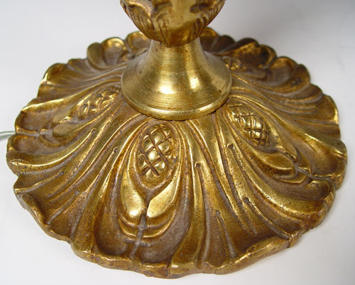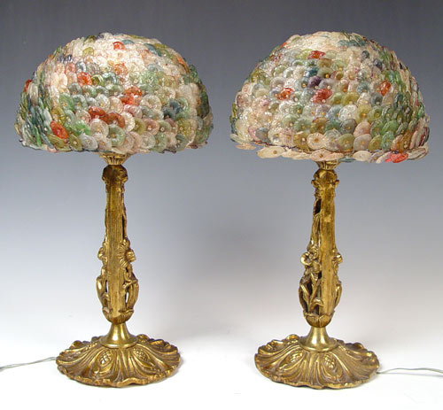 DECORATIVE PAIR OF CONTINENTAL CAST METAL LAMPS WITH LAYERED GLASS DISC SHADES: 1920's style domed shades of multi color glass discs. 20'' x 11'' dia. .