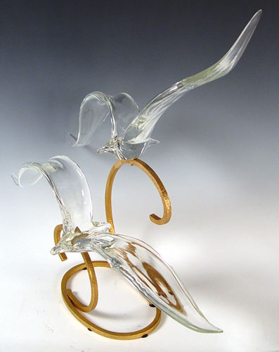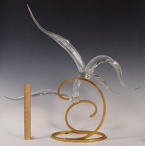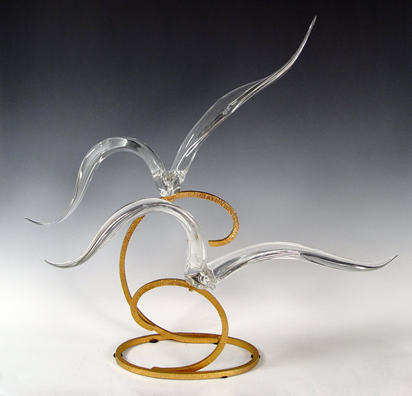 SIGNED LIDO GLASS & METAL SEAGULL SCULPTURE: Glass seagulls and metal base signed on glass J. Lido. Measures 27 3/4'' high x 31'' wide x 14'' deep.
