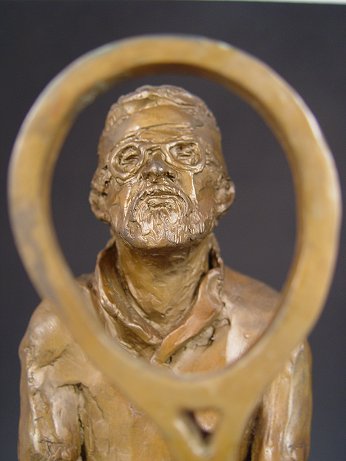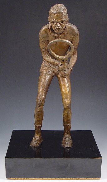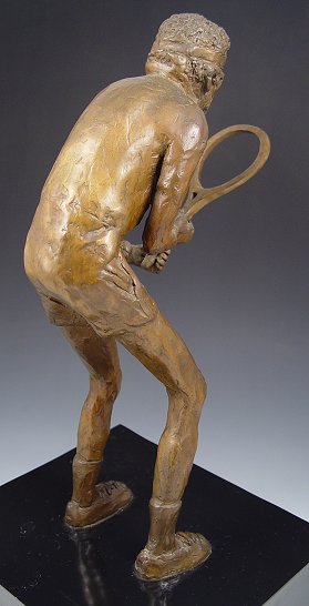 BRONZE SCULPTURE OF TENNIS PLAYER BOBBY RIGGS: 14'' h., unsigned, affixed to laminated plinth.