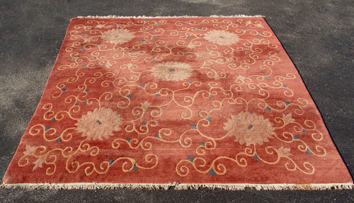 LARGE DESIGNER CONTEMPORARY CARPET: Approx. 11'9'' x 15'. Very plush carpet, deep rose with blue.