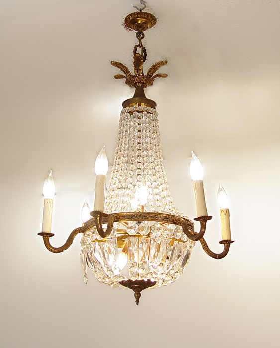 FRENCH EMPIRE STYLE CRYSTAL CHANDELIER: 11 lights, prism chains, approx. 22''dia, 26''h. excluding the chain.