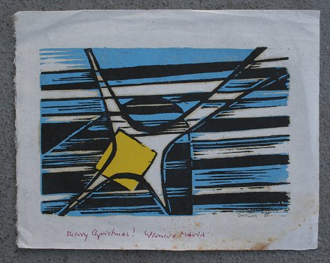 DREWES, Werner, (American, 1899-1985): Abstract Design Xmas Card, Wood Cut, pencil signed and dated '80, unframed, crease in corner with some foxing.
