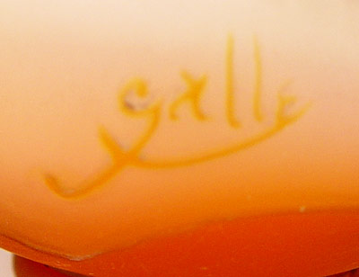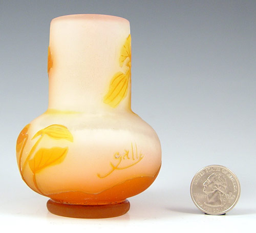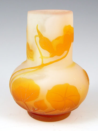 GALLE' FRENCH CAMEO GLASS VASE: Burnt orange to rose, morning glory design, 3 1/2''h. Signed in cameo.
