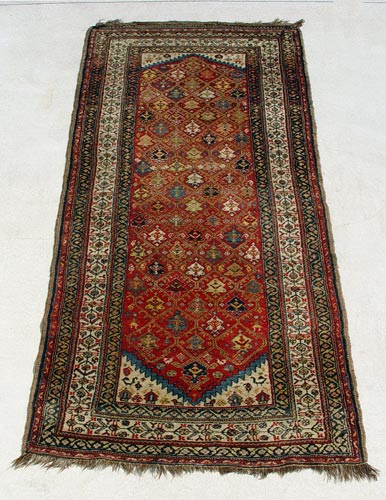 KURDISH ORIENTAL RUG: Approx. 4'4'' x 9'2'', hand tied in Persia, wool pile on wool foundation, approx. 56 kpsi, circa first quarter of 20th C. Details of description from 2006 Carillon Carpet and Rugs appraisal, Tyler S. Rice Certified Appraiser, which is available for viewing.