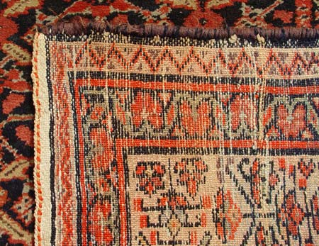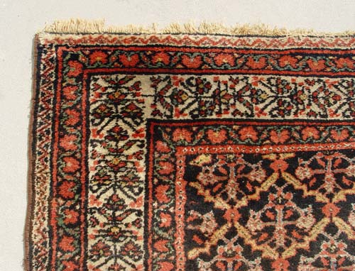 HAMADAN ORIENTAL RUG: Approx. 4'10'' x 9'10'', hand tied in Persia, wool pile on cotton foundation, approx. 72 kpsi, circa first quarter of 20th C., please note some low areas in rug. Details of description from 2006 Carillon Carpet and Rugs appraisal, Tyler S. Rice Certified Appraiser, which is available for viewing.
