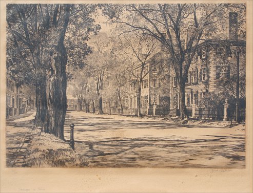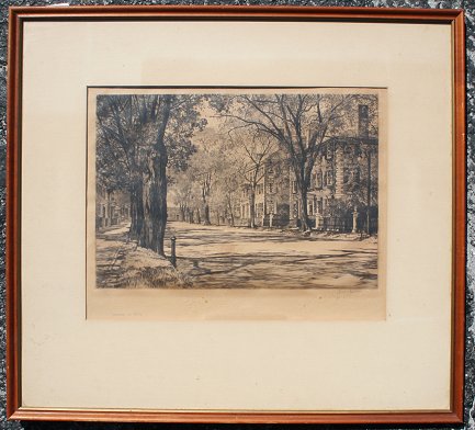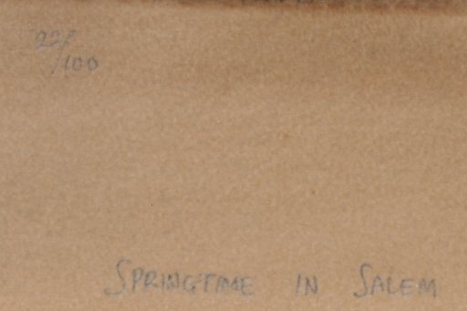 CHAMBERLAIN, Samuel, (American, 1895-1975): ''Springtime in Salem'', Etching, 10 1/4'' x 13'', sight size, pencil signed and titled, #'d 22/100, original wood frame, 18 1/4'' x 20 1/4''. Condition - Overall browning to paper with evidence of toning, some fainted scattered foxing.