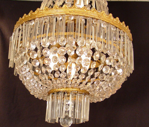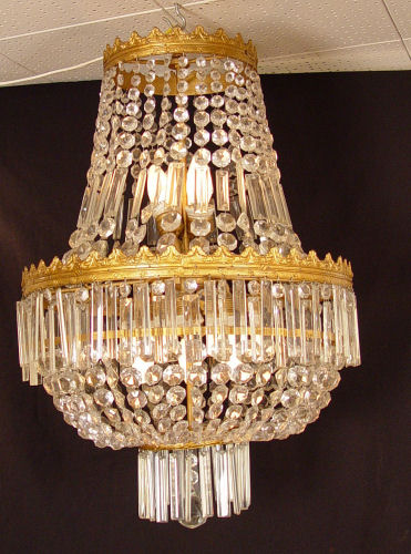 EMPIRE STYLE CRYSTAL CHANDELIER: Nine light, bar and chain prisms, Approx. 28'' x 18''dia.