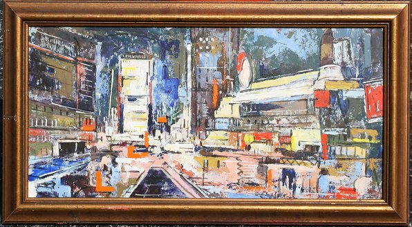 SCHWACHA, George, (American, 1908-): New York City Street Scene, OIL/Masonite, 12'' x 24'', signed, framed, 15'' x 27''.