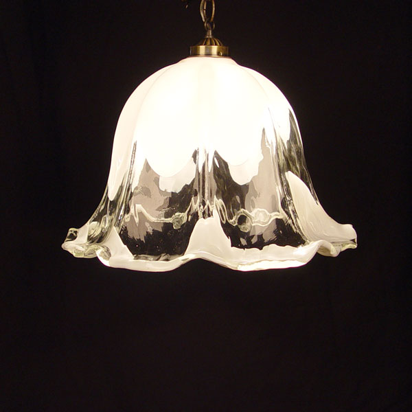 TULIP FORM ART GLASS HANGING LIGHT: Measures 12'' high excluding chain x 16 1/2'' dia.