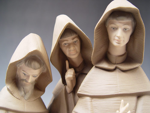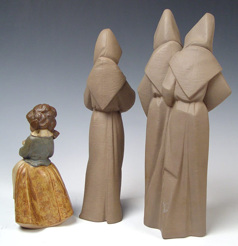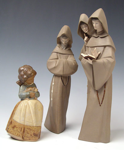 3 PIECE LLADRO MONKS & TENDERNESS: To include 1) 2 monks with matte finish, measures 14 3/4'' high. 2) Single monk with matte finish, measures 13 1/4'' high. 3) ''Tenderness'', Gres finish, measures 8 1/4'' high.