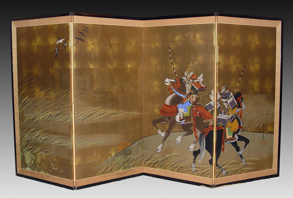 JAPANESE 5 PANEL PAINTED SCREEN: Painted on paper, 6' long, 36''h.