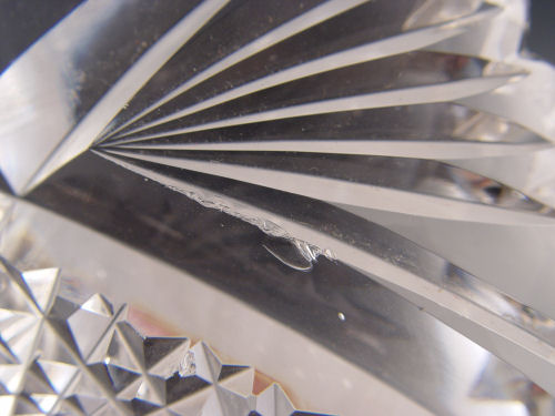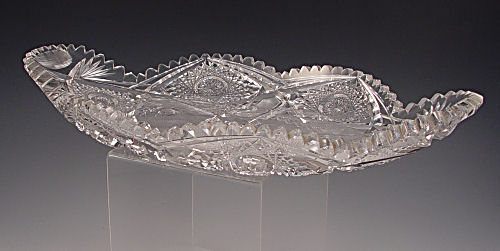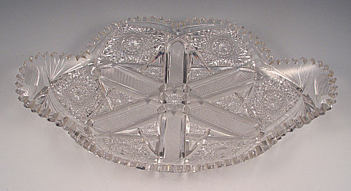 18'' SIGNED J. HOARE & CO BRILLIANT CUT GLASS ICE CREAM TRAY: Ca. 1854-1910. A clam chip and tooth chip. 18'' long x 10'' x 2''.