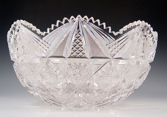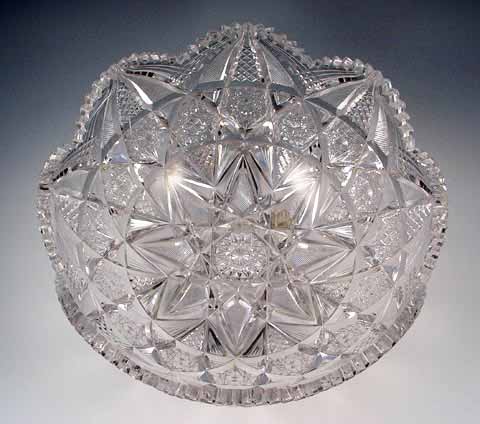 AMERICAN BRILLIANT CUT GLASS PUNCH BOWL: 7'' high x 14 1/4'' dia.