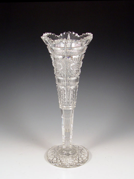 HAWKES AMERICAN BRILLIANT CUT GLASS TRUMPET VASE: Attribution. Measures 12'' high, note u groove chip.