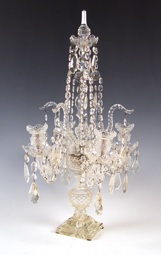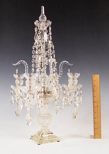 FINE CUT CRYSTAL TABLE TOP CHANDELIER: Four lights. Electric ready, will need fittings. 25 1/2'' high