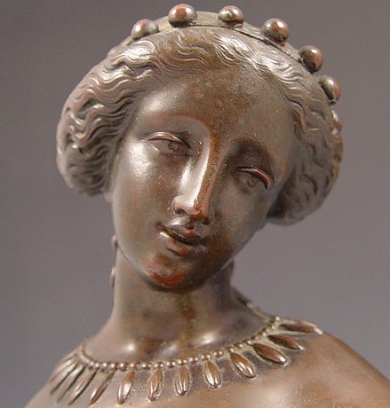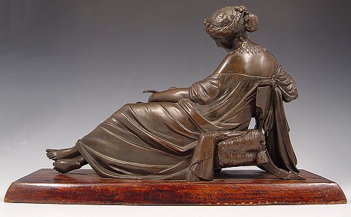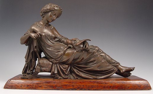 PERIOD RECLINING MAIDEN WITH DOVE BRONZE: 8 1/4'' h. x 12 1/2'' w., affixed to wooden plinth.